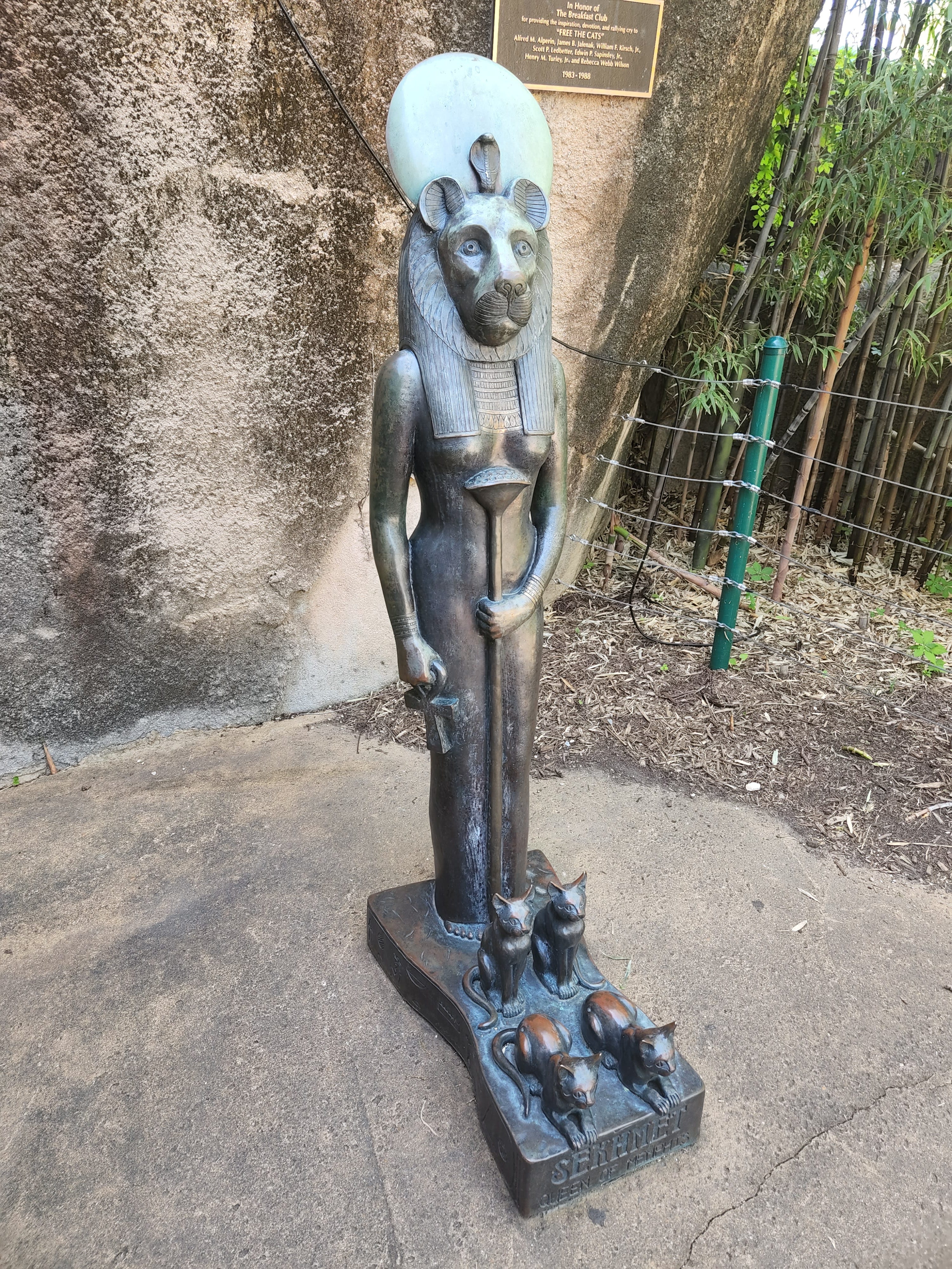 That connection persists halfway across the world in Tennessee. I made an afternoon trip to the Memphis Zoo (a lovely one!), and lo and behold, Sekhmet was there to greet me (She always finds me in the most unusual places — much fodder for a future post.)